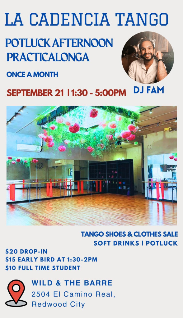 You're Invited to August Potluck Afternoon Practicalonga at La Cadencia Tango! DJ Saddam will be spinning the best tango beats, keeping us on the dance floor all afternoon long. It's ...